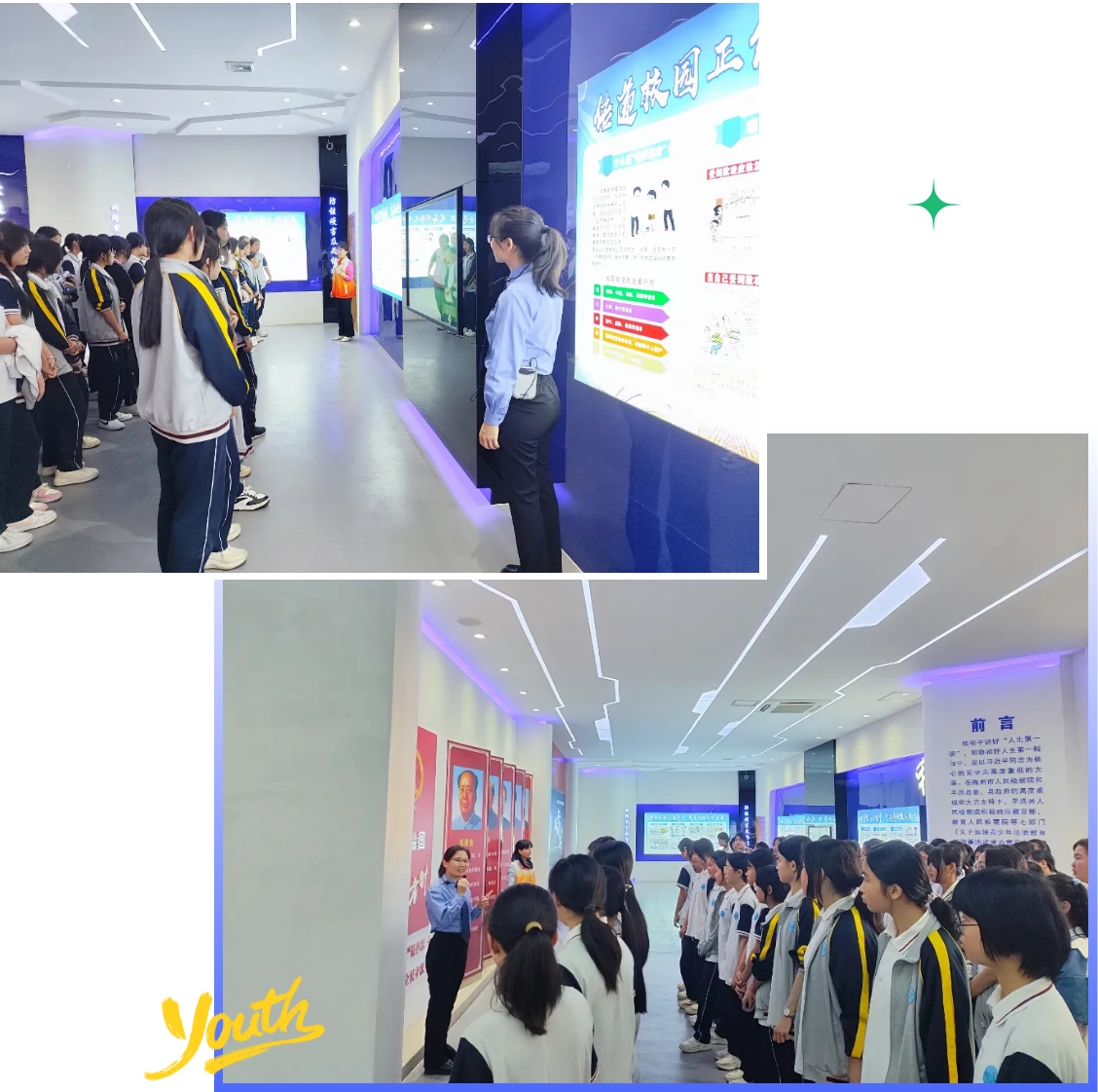 活动当天,繁星队员们化身“列车长”,带领同学们有序参观基地,同学们在法治教育展区通过图文案例学习未成年人相关法律知识,在设备体验区借助模拟答题互动,直观感受自我保护的重要性。